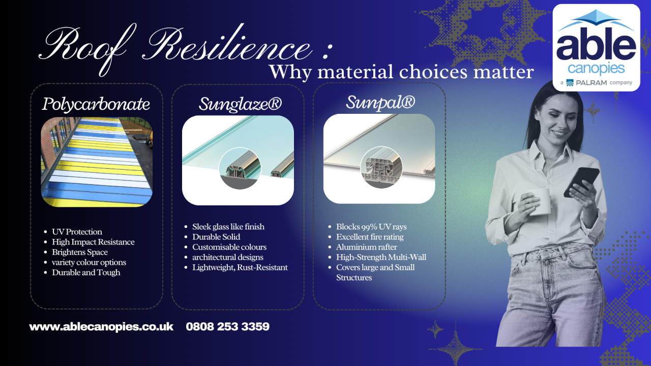 Whether you’re designing a full-scale commercial canopy or enhancing outdoor spaces with a sleek shelter, roofing is more than just a structural element; it’s a balance of protection, performance, and aesthetics. With shifting weather patterns, sustainability targets, and safety standards, selecting the right roofing material has never been more critical