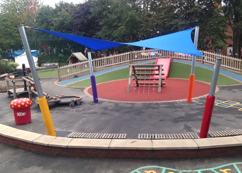 In the height of summer, most children love playing outside & running around however, they may find themselves getting a little heated and need somewhere to cool down whilst still benefiting from fresh air. Shade Sails provide a cool, shaded area in the playground to which the children can sit under to keep cool and help avoid the risk of sunstroke and sunburn.