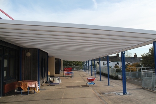 The Coniston Wall Mounted Canopy installed at St Michael's Church of England Middle School in Exeter1. You have a great playground or outdoor area, but when it rains the area can’t be used as there is not enough shelter