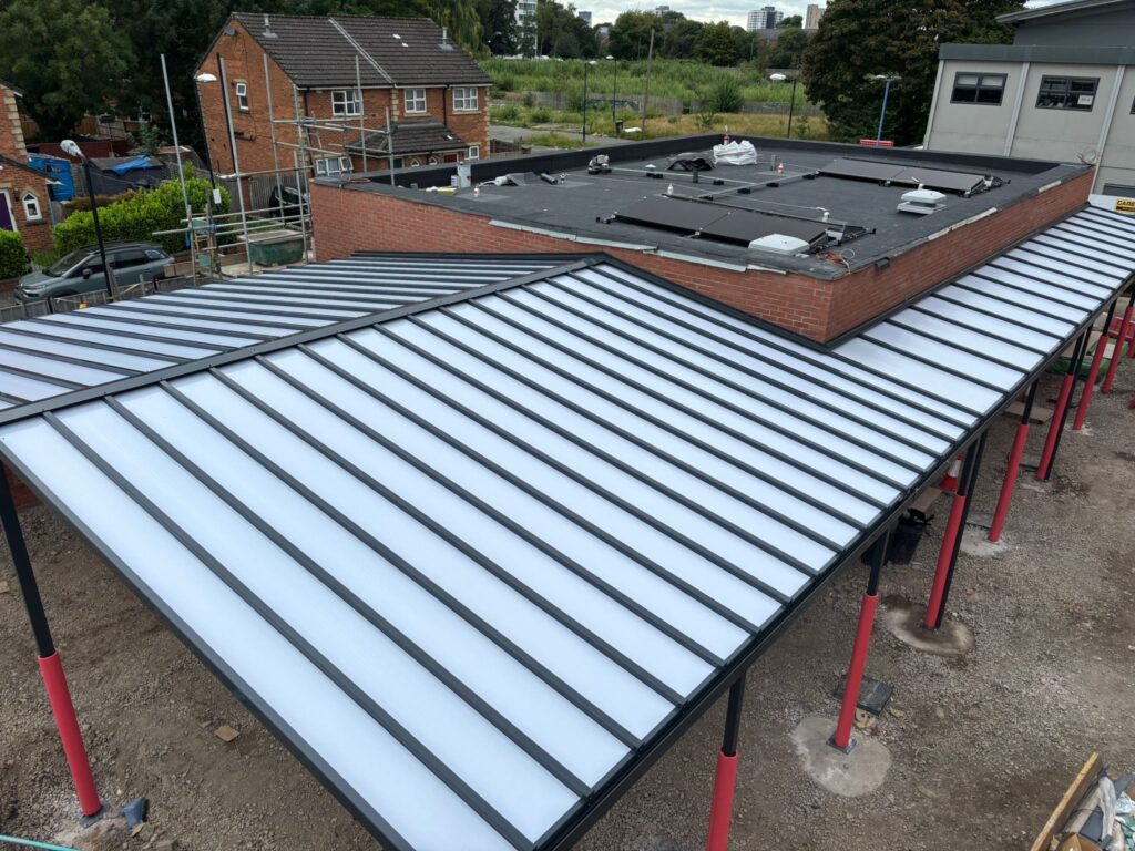 Whilst we don’t have completed images of this installation, it’s a great example which shows the versatility of the Coniston Apex Freestanding Canopy. Loreto Sixth Form College in Hulme, needed a covered outdoor area where their students could dine outside all year round.