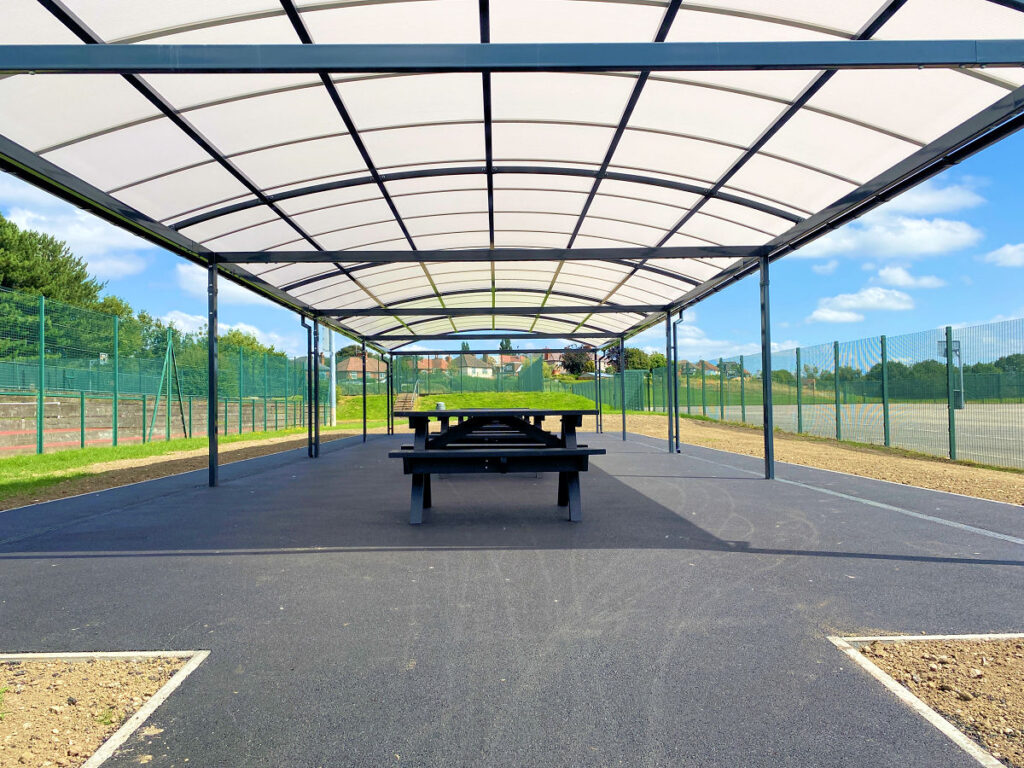 The Hayfield School in South Yorkshire opted for two 12m x 6m Welford Dome Freestanding Canopies to cover the students’ lockers so the inside space they created, could be used to create additional classrooms.