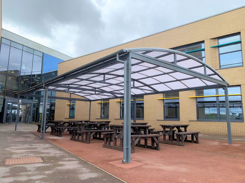 The Welford Dome’s large span is one of the reasons it is such a popular shelter. It can span up to 6 metres wide and can be manufactured to any length, enabling it to cover extra-large areas. This impressive size, makes it very popular for use as an outdoor dining canopy within high schools and colleges, allowing schools to expand their dining space, whilst reducing congestion in their dining halls.