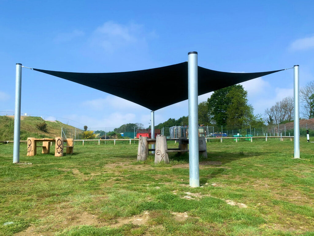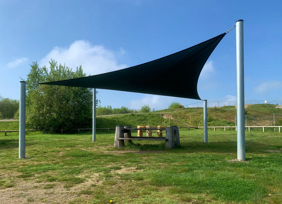 Before initiating the planning process, Hart District Council specified several important requirements. One key concern was the potential for anti-social activities in the area; therefore, they wanted a shade structure that would not enclose the space, which could encourage such behaviour. The open design of our Shade Sail canopy, providing weather protection without enclosing the area, was an ideal fit. Additionally, the council noted that the park area is mainly accessed by car, so the shade provision needed to avoid blocking access at the drop posts and fit within the existing space constraints.