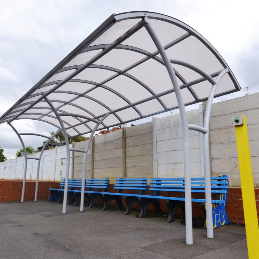 From sleek lines to soft curves, every one of our shelters offers UV protection, shelter from the rain, and optional extras like benches and seating. Plus, with a wide choice of powder-coated colours, your shelter can blend seamlessly with your surroundings.
