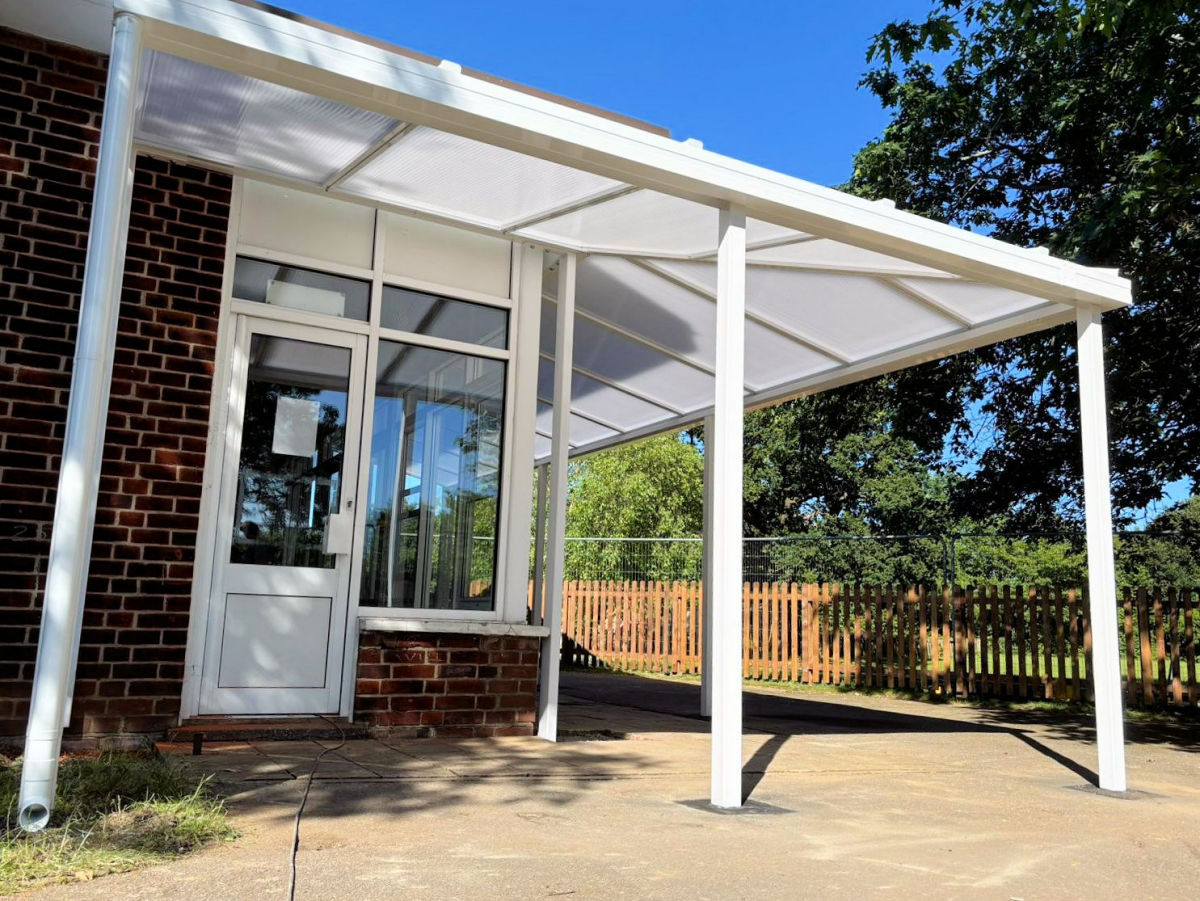 They reached out to us as they were considering installing a canopy in one of their external play areas that would cover the external door and along the side of the classroom. The canopy would provide cover to the new nursery area which they were hoping to create within the school.
