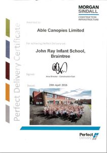 To our delight, we have just received a certificate from Morgan Sindall explaining that we, along with all other parties involved with the project at John Ray Infant School achieved have achieved the Perfect Delivery status.