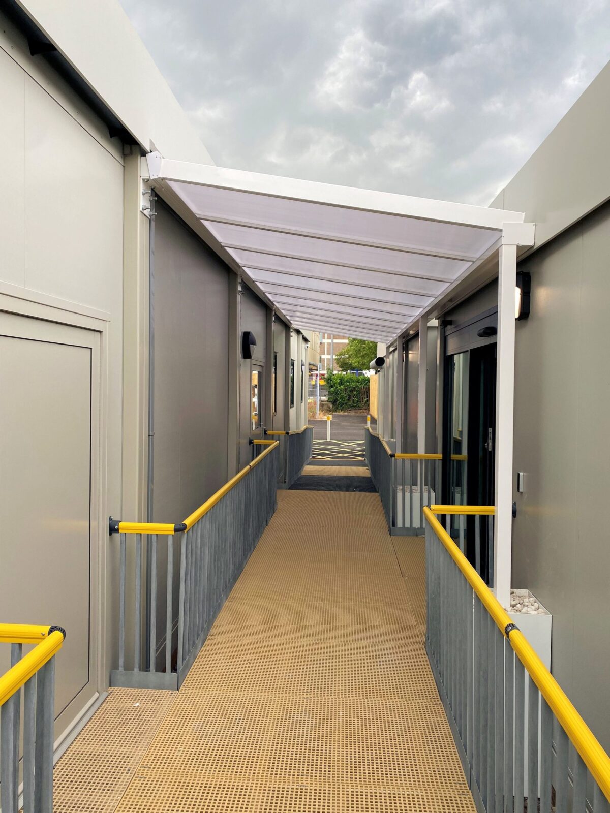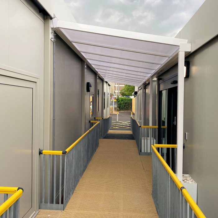- Dry linkways can be created with walkway canopies, ensuring patients, staff and visitors can walk around your site whilst keeping protected from the weather